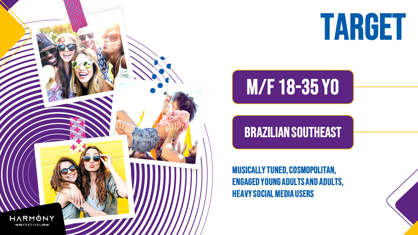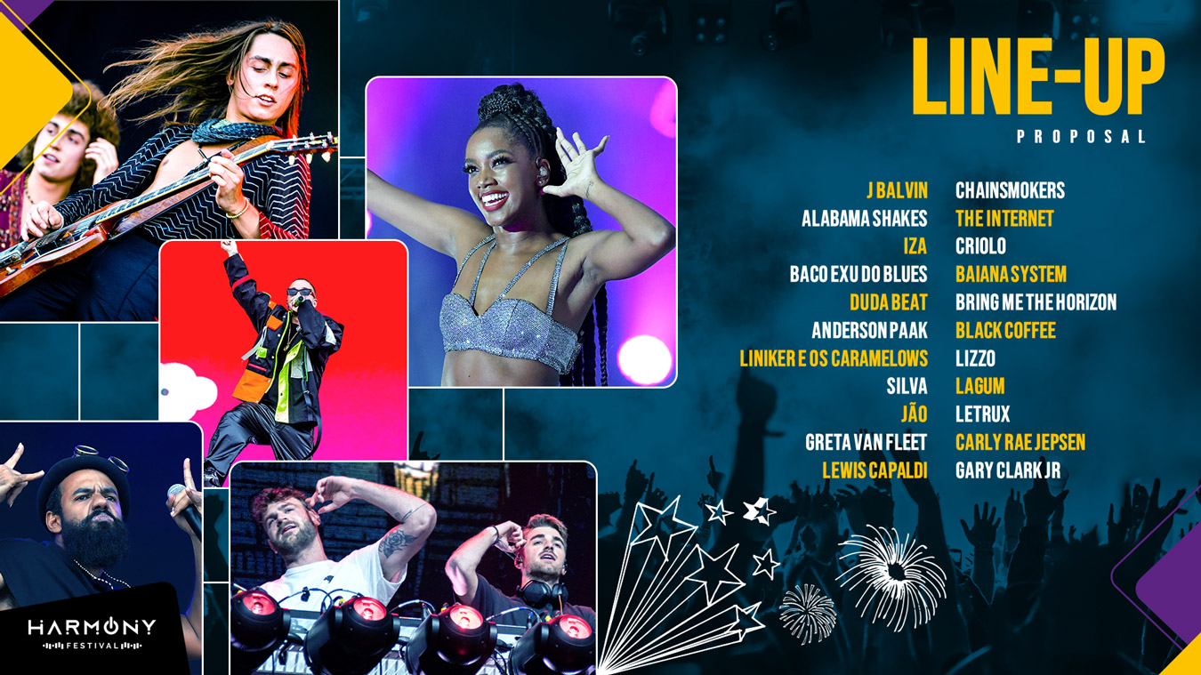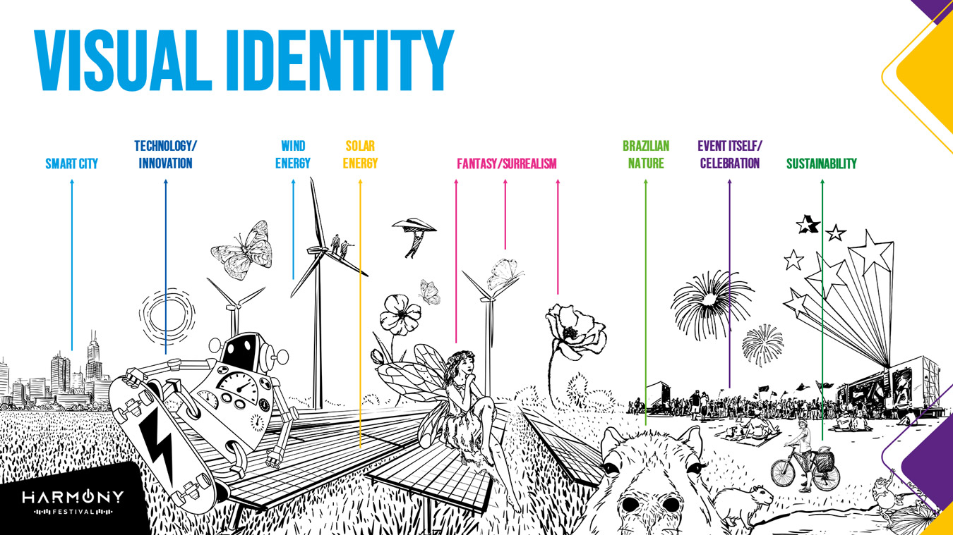 I participated in the elaboration of the concept and created the visual identity of Harmony Festival, a proposal which would be presented to major national and international brands, as potential sponsors.